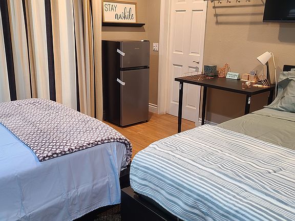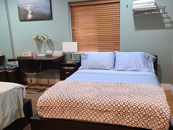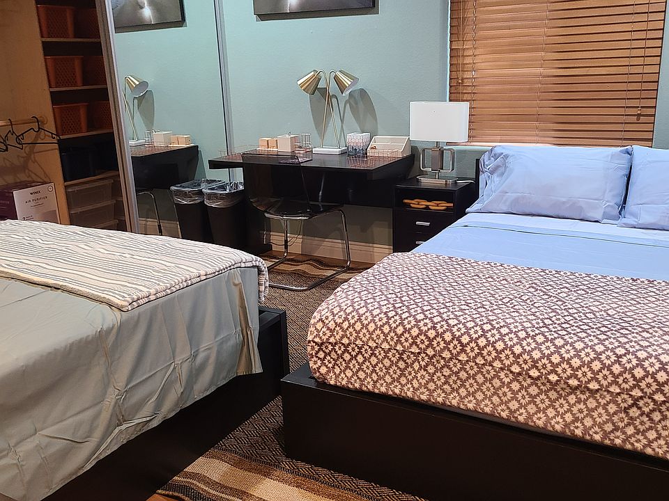 A shared bedroom will be available for rent on January 1, 2026. Viewings are by appointment only, and the room will be ready for move-in. If you're a student needing a room now that school has begun, your search ends here! The space will be thoroughly sanitized and ready for you to move in. It is fully furnished and costs $850 per person in a two-person room. However, if you would rather not share a space with another person, you can rent the entire room for only $1300. The other furnishings will be removed and you can have the entire room for yourself! The space is currently occupied by a student who will be moving out at the end of the semester, which leaves plenty of time for you to move in and start the new year in your new home. Depending on whether a shared space or an individual space, a security deposit of $850 or $1300, respectively, is required before moving in. This location is perfect for college students and prospective students. I am just a 3-minute walk from Palomar College and a 5-minute drive from CSUSM, St. Katherine, and St. Augustine. One dog and multiple kittens reside here, so no additional cats or dogs are permitted. Please refrain from asking, as requests will not be entertained and no exceptions will be made. Both male and female tenants currently reside in the home. This space is designated for single occupancy in a shared bedroom, or individually; therefore, couples and overnight guests are not allowed. Located downstairs, this is the second-largest bedroom available for rent in the house. There are two shared full bathrooms, both equipped with showers, while the upstairs bathroom features a tub perfect for relaxing after an intense workout. This room is spacious! It includes a mini-fridge for each person, ceiling fan, large walk-in closet, nightstand, air purifier, lamp, bed frame, flat-screen TV, and a queen-sized bed with a pillow-top mattress per person. You also have your own desk for studying or occasional remote work. However, please be aware that regular remote workers will be charged extra for utilities. You have private access to your own covered patio, perfect for enjoying the cool summer breezes or storing your bike or other items. The room features sustainable bamboo hardwood flooring that feels inviting underfoot, complemented by a newly installed area rug. The monthly rent includes all utilities (gas, electric, and water), access to laundry facilities, full kitchen privileges, Amazon Prime Video, and WiFi (Cox Ultimate High-speed Internet). This is the best deal you'll find, especially when you are so close to campus! Rather not share a bedroom with a stranger? You have the option of going solo! Either way, you will feel right at home. Visitors are welcome, but out of respect for other tenants, they must depart by 10 pm on weekdays and by midnight on weekends. Overnight guests and sleepovers are prohibited, as this is a single-family home, not a hotel. There are many hotels and motels in the surrounding area available to accommodate your overnight, long-term, or visiting guests if necessary. The monthly rent does not include reserved parking in the driveway; however, there is plenty of on-street parking available for your vehicle.