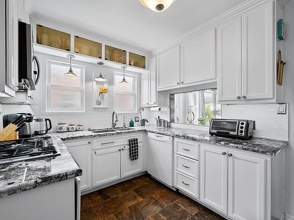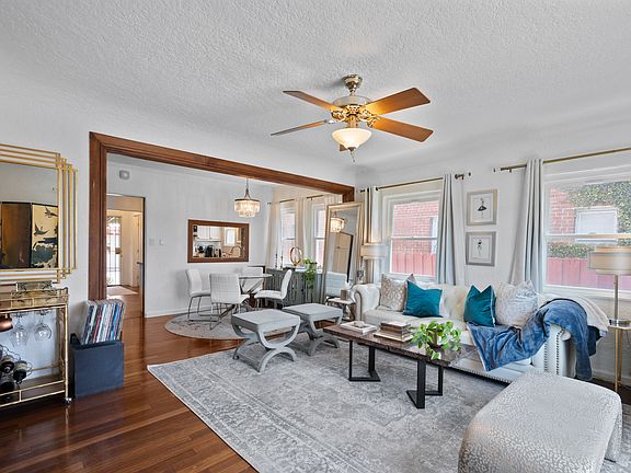 As you step inside, you'll be greeted by a spacious living/dining room adorned with gorgeous floors and the original built-ins. The layout seamlessly flows into the recently renovated kitchen, boasting granite counters, stylish backsplash, and stainless steel appliances, making it a perfect spot for anyone who loves to cook. Cozy up on the couch to watch your favorite movie and enjoy the electric fireplace.