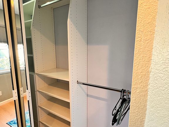 Wall-to-wall closet with built-in shelving
