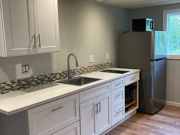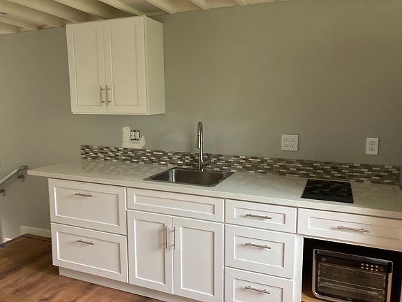 The kitchen has white shaker style cabinets with quartz countertops and is fully equipped (I am an avid cook so have furnished it accordingly). The bathroom has a bathtub with beautiful subway tiles. The apartment has its own deck space with a view of the hills and woods.