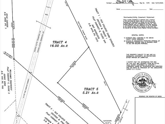 Old Greeneville College Farm Estates. Subdivided and restricted farm land. 16 acres of wooded land ready for a site-built home. Owner/Agent.