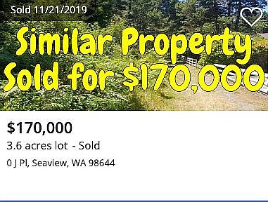 Unbelievable Property selling BELOW MARKET VALUE - just $37,900 and or $7,990 down, $999 doc fee, and $550 monthly Worth $70,000 Selling at 55% of Market Value Seaview, Washington is a place anyone would be happy to call home. This property is settled right near beautiful Baker Bay, which boasts of endless fun activities for the whole family. It is also less than 2 miles from the coast of the Pacific Ocean! Spend the weekend relaxing on one of the many beaches that stretch along the coast. Portland, OR is just over a two-hour drive away, close enough for an exciting weekend getaway! The Astoria Golf & Country Club and the Shallon Winery are just two examples of the great, local amenities. There is also a wide range of terrific local schools to choose from, four of which are less than two miles from the property. Don’t miss out on the opportunity to live in this charming town in the great state of Washington. Property Summary Incredible 4-acre lot in Seaview, WA which would make the perfect building lot. This lot has the building potential for a dream home! We are offering this property at a discounted ROCK BOTTOM cash price so that one lucky buyer can own the perfect property at a BELOW MARKET price. Property Value The Market Value for the BEAUTIFUL lot is around $70,000. Based on recent property sales in the area. We offer this property for only $37,900, which saves $32,100!! Property Details APN: 10112813195 & 10112813116 Property Type: Acreage Zoning: Agricultural County: Pacific Property Address: Sandridge Rd GPS Coordinates (Approximate Center): 46.326262, -124.045858 City: Seaview Zip: 98644 Acres: 4 Square Feet: 174240 Approximate Dimensions: 508.98 ft x 337.57 ft x 644.08 ft x 375.73 ft Topography: Flat Mobile Homes Allowed: Not permanently Nearest Cities or Subdivisions: Holman Oceanview Ilwaco Annual Taxes: $372.27 Utilities Power: Not connected Water: Not connected Sewer: Not connected Purchase Options Cash Price: $37,900 We are currently offering this property at a rock bottom cash price of $37,900. This is the deal of a lifetime, don’t miss out on this great opportunity! Owner Financing option: just $7,990 down, $999 doc fee, and $550/mo for 144 months Ask for more seller financing options. We can make nearly everything possible for you. Local Amenities Local Schools Include: Long Beach Elementary School Ilwaco Hilltop Middle School Ilwaco High School Closest Grocery Stores: Ilwaco Food Market Sid’s Supermarket Scoopers Market Local Restaurants: The DEPOT Restaurant 42nd Street Cafe and Bistro Serious Pizza Local Attractions: The Rides Columbus Pacific Heritage Museum High Life Adventures Zip Line Tours READY TO BUY OR HAVE QUESTIONS? Purchasing property from us is simple and easy. We have closed hundreds of real estate transactions and know the process well. We always use a 3rd party title company to make sure our buyers are protected and ensure the title is free and clear. Message us here or call us today to get started. Disclaimer The buyer is responsible for verifying all information with the County as to what can and can't be done with the property. The buyer will need to work with the County to obtain the proper permits if needed. The buyer will also need to confirm the availability of any utilities needed or serviced on the property. Seller makes no warranties or representations about the land, its condition, or what can be built on the property.