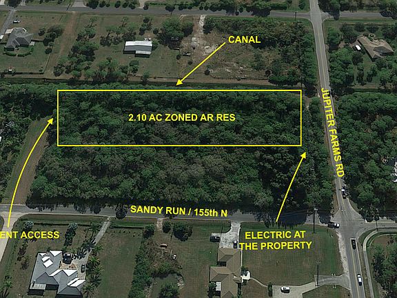 Must see! Build your dream home on 2.10 ACRES in desirable equestrian friendly Jupiter Farms! Paved road on both sides of this treed corner parcel. Backs to canal and sits back off Sandy Run road for added privacy. 30' easement access on east side. Just mins to restaurants, shopping and services, Cypress Creek Natural Area or Riverbend Park where you can enjoy biking, hiking, horse trails & kayaking. Short drive to Jupiter Beaches. So much to offer here! Don't miss your chance!! Survey on file. Sign at cleared easement on east side at Sandy Run & 98th St. N and at rear on Jupiter Farms Rd. As per seller, land was once fertile farmland!