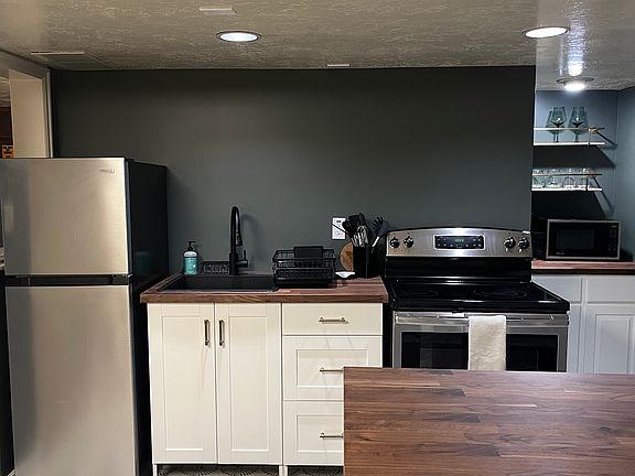 You will have a separate entrance that goes through the garage and will lead to your private living quarters. The basement has a lot of large windows, which creates a bright and warm feel. There is a large living room area that is attached to the new kitchen. You will have a spacious bathroom with a shower and jetted tub.