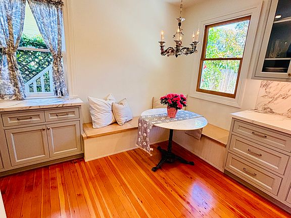 Our home features bay window benches in the Living Room, Dining Room and both large bedrooms. The Living Room and Dining Room offer comfortable seating and eating options for the whole family and a couple of cozy reading corners.