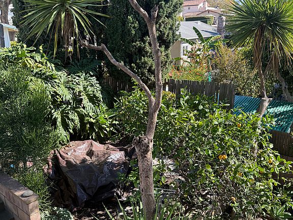 ~ Backyard garden terrace with space for outdoor table & chairs.