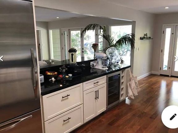 2 bedroom 2 bathroom home on The Mesa. Close to down town, The Mesa beaches, Lazy Acres and yet feels removed and above it all. The home is set in an Oak forest, hawks flying and views of Cathedral Peak. A very special Sanctuary Home boasting many French doors, much natural light, 2 patios, large gated natural yard space, views, chefs kitchen with Viking appliances, multiple shower heads in each shower, large off street parking area and a separate office space with large glass doors.