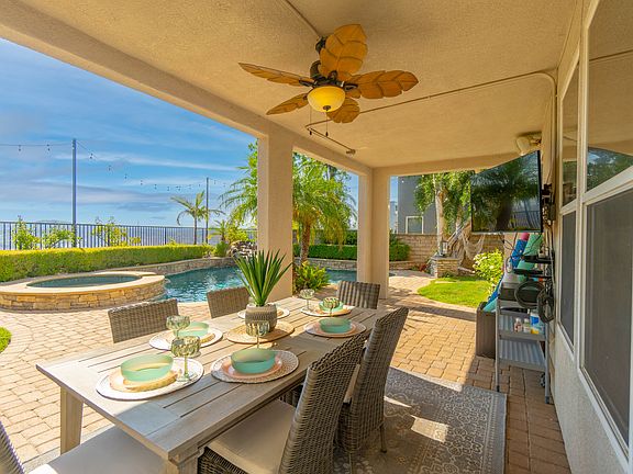 Step outside to your private oasis. The amazing, large backyard is an entertainer's dream, featuring a sparkling pool and spa, a cozy fireplace, a BBQ, patio area, and a dedicated dining area. Plus, you also have a balcony with patio furniture, perfect for relaxing while you enjoy stunning sunsets. Embrace breathtaking views from this elevated vantage point. Parking is a breeze with a two car garage, a two car driveway, and plenty of street parking.