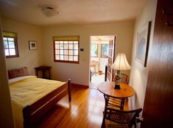Quiet, light filled, small but complete one bedroom apartment within home, with separate entrance. Lots of custom fine woodworking.Tile shower, full size bed, leather couch bed , gas stove, under counter fridge, micro wave. Owners live in separate ADU on property. On quiet street in beautiful area, steps from Arana Gulch greenbelt and 20 min walk through harbor to two beaches. Includes all utilities, AC, internet, water/dryer.