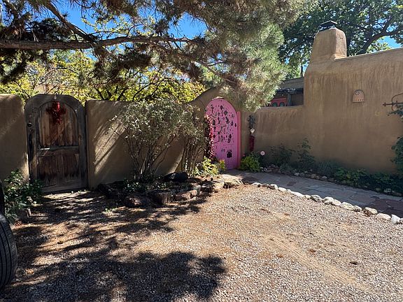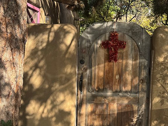 True 100 + yr. old adobe studio with hardwood floors, saltillo tiles throughout, full kitchen, kiva fireplace, skylight and a spacious bathroom with bathtub. Shaded, private front and back patio. A Beautiful Ponderosa Pine, lilac bushes, native foliage and an apricot tree grace the property. The sound of the fountain in the main courtyard can be heard over the wall that separates the main house.This property is available partially furnished (prefered) or vacant. It includes a queen size bed, night stands, couch, coffee table, table and chairs, cutlery, pots and pans, dishes and glasses.