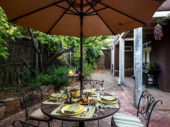 Newer construction with Old World charm, this furnished open floor plan casita is easy walking distance away from the galleries, restaurants and coffee shops of Canyon Road, and enjoys a favored location on a tree-lined street with no through traffic.