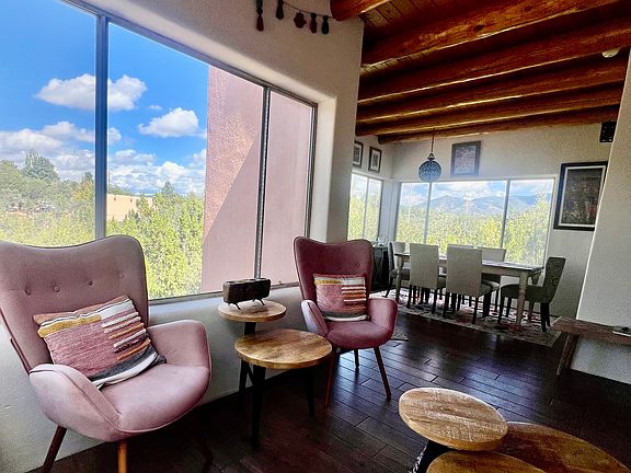 This home is for the person who loves gorgeous views and hiking off the property, from a cozy retreat - hike down through private forest to walk through beautiful scenery! Santa Fe style