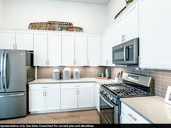 Storage space is no issue with the flexible Greeley floor plan.. This well-designed home greets you with a large foyer area that grants you entry to your second and third bedrooms, each containing walk-in closets for maximum storage. The full secondary bath resides between the two bedrooms. Down the hall is entry to your walk-in utility room, as well as your two-car garage. If you need extra space for supplies, tools, or another car, the Greeley provides you with the opportunity to swap your two-car standard garage for a two-and a half car or three-car garage. Around the corner is your spacious, open-concept kitchen that features a unique curved kitchen island overlooking the expansive dining room and family room. This combination of rooms is the perfect layout for elaborate dinner parties or hosting your family gatherings of any size. Your kitchen boasts incredible features like sleek granite countertops, flat-panel birch cabinets, industry-leading appliances, and an oversized pantry. The Greeley home also gives you the option of including a covered patio - ideal for relaxing outdoors and watching the kids play or hosting friends for backyard barbecues. When it's time for rest, retreat to your private master bedroom right off the family room. Your master suite boasts a divine master bathroom consisting of double vanities with cultured marble countertops, a soaking bathtub with a stand-alone shower, and a generously-sized walk-in closet. If you desire, you have the option of Amenities: Opt. 2.5 or 3-Car Garage, Opt. Covered Patio, Opt. Fireplace, Opt. Master Super Shower, Oversized Pantry