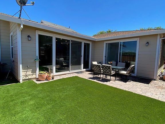 This 3 Bedroom 2 bath 1500SF home features a large open living room and kitchen with vaulted ceilings, tile floors, and a gas fireplace. A conveniently placed slider provides access to the back yard featuring pavers and artificial turf. The back yard backs up to an open/undeveloped grasslands areas providing peace and quiet. Located in a quiet family oriented neighborhood in Northwest Santa Rosa off Orleans St adjacent to Petersen Ln. Two car garage + driveway with additional street parking. Washer and dryer included. Central heat and AC. Modern Stainless steel appliances.