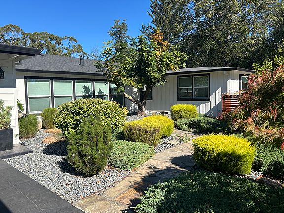 This stunning Montecito Heights mid century home is located on a private, gated, 1.6 acre parcel. This single level home is perfectly situated on the hilltop, set among majestic oaks with beautiful views and complete privacy. Formal entryway, large living room with open beam ceilings, formal dining room with custom colors and a full bar/butler's pantry off the kitchen with custom cabinetry and wine fridge. The gourmet kitchen offers top of the line stainless appliances, quartz countertops, ample cabinetry and full pantry. The spacious primary bedroom has new carpet, tons of windows to let in the views of the outdoors and an oversized closet with built in shelving and drawers. Another large bedroom full of light offers built in cabinetry and desk space, as well as a sunny window seat. The third bedroom is en suite and could also serve as an office. Long hallways, windows everywhere and a full laundry room with washer/dryer included add to the many amenities this home has to offer. Outdoors you will find a zen courtyard with drought resistant landscaping and a peaceful water fountain. Additionally there is a small pond with another flowing water fountain with a seating area and flower garden. A large patio overlooks the backyard and is perfect for sunning during the day and watching sunsets at night. Fully enclosed garden area with built in beds and automatic drip system, orange, lemon, lime, tangerine and olive trees on the property. Covered carport with room for two cars, as well as plenty of additional space for parking. Located just a short walk away from Pacific Market and Willi's Wine Bar and only minutes to downtown Santa Rosa. Tankless water heater and whole house automatic passive generator means you will never lose power! Rent includes water, garbage and internet and comes furnished. One pet may be considered. Minimum 3 month lease, up to one year. Must have minimum credit score of 680, income of 2.5 times the rent and excellent rental history to qualify. There is a small studio located on the property that is separately rented and occupied. Security deposit is $5500. Available January 15th. Message for a private showing today! Minimum 3 month rental. Can be rented with some furniture removed.