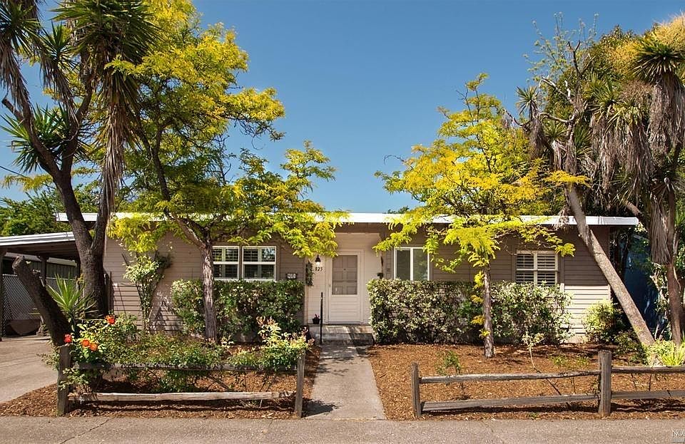 Cute little house with 1950's features! A rare find - 4 bed/2 bath home one of which is in the guesthouse. Newly painted inside both main and guesthouse. New carpet throughout the main house and wood-like laminate in kitchen. The kitchen has painted cabinets with new hardware and a new stove. The primary bedroom has the view of the backyard with a sliding glass door and a small deck. The bathroom has been updated with a new toilet, mirror and vanity light, the flooring was updated a few years prior. Guesthouse has so many uses - for a family member, guests, office, game room or just for some privacy. Large backyard for entertaining with pool, just for relaxing, or maybe growing your own garden! Nice, low maintenance front yard with lots of greenery plus parking options include carport, driveway, and street parking.