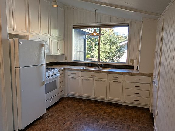 Lovely cottage on private property with deck, yard and privacy. This one bedroom cottage includes a loft space that would be great for an office with lots of natural light, views and a half bath. The main floor features an open floor plan, wall heater, AC in living area, fireplace, updated kitchen appliances and a washer and dryer in the main bathroom. The spacious backyard is fully fenced, the sliding glass doors off the living room lead out to the user friendly deck and then down to the private yard. Utilities included are gas, electricity, landscaping and trash. Pets will be considered.