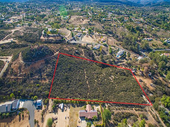 20 acre parcel of land listed for sale in Valley Center area of San Diego County. Highly desirable rectangular lot dimensions, offering mountain, open space and panoramic views. Corner Lot. Property located and accessed via public roads and very close to San Diego County parks/trails. Utilities may be available overhead and/or presently stubbed at corner of lot (NW) of Santee Lane and Hell Creek Road. Buyer to verify.