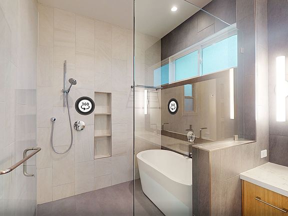 - Master Suite 2: Walk-in closet, dual-sink bathroom, and luxury soaking tub