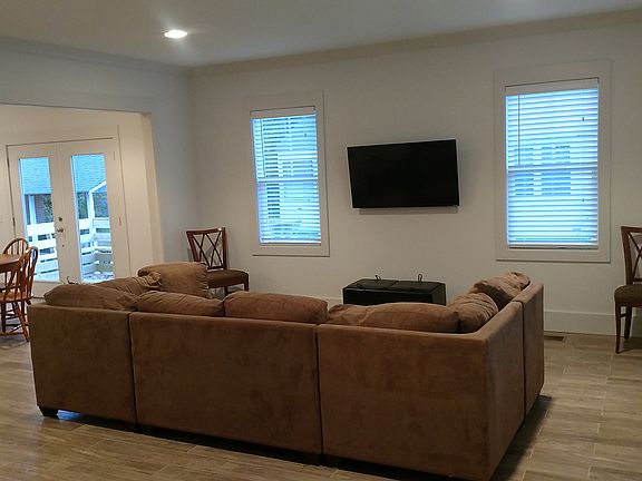 There are 3 bedrooms upstairs, two outfitted with twin beds and one with the Queen bed. These bedroom share a large double bath with tub bath and water closet. Downstairs there is a forward bedroom with a private entrance with twin beds and an adjacent bath. In the rear there is the "Captain's Suite" that consists of a large queen bedroom and double ensuite as well as a large private sitting area with a pullout queen sleeper.