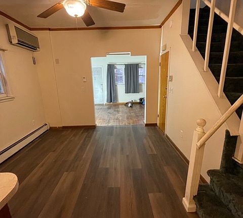 Rent, security and a one-year lease are required. Rent is $950 per month. Tenant is responsible for all utilities. Heat is gas. Tenant pays gas, electricity, water & sewer. Landlord pays trash fee.