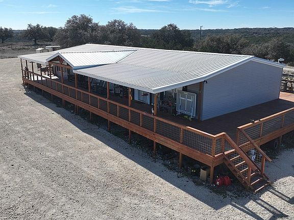 Double G Ranch +/- 124.89 Acres. Located in eastern Edwards County, Texas. Easy access, less than 2 miles of great access off the highway. A short 10 minute drive into Rocksprings and less than an hour from Kerrville. Fencing in place. Private water well, electricity, septic. 4/2 +/- 2280 sq ft fully furnished, including appliances, mobile home with +/- 1944 sq ft of wrap around decking to sit and enjoy the spectacular views. This high-end home can sleep up to 20 people. There is a large living room with gas fireplace and an additional family room. Views are spectacular from the front deck. Storage shed and large container for extra storage. Walk-in game cooler. Cleaning station. The terrain is rolling to sloping, there are 3 canyons with thick vegetation that make a great habitat for the wildlife. Clay lined pond fed by the well that provides year-round water for the animals. 4 hunting blinds 5 feeders. Ranch road system allowing access to almost all of the ranch. The abundance of game includes whitetail, turkey, hogs, axis, elk, red deer, addax, and other free ranging species. Listing #167 with Western Hill Country Realty