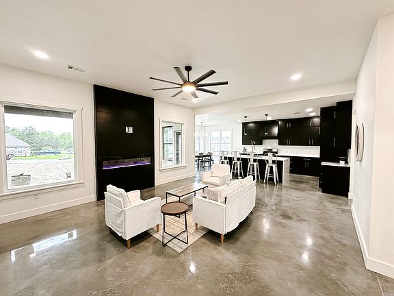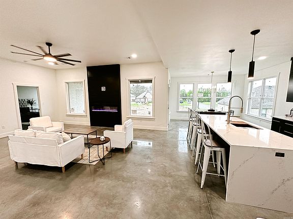 Welcome to luxury living in this brand-new custom spec home! Boasting 4 beds, 2 baths, and an upstairs area perfect for entertaining, this 2200 sqft beauty offers versatility and style. Enjoy a sleek office, perfect for work or study. Revel in modern amenities like an electric fireplace, spacious island with elegant sink, quarts countertops/backsplash, and very tall ceilings with a walk in pantry right off the kitchen. Master bedroom is isolated with a beautiful master bathroom with big oversize bathtub-jacuzzi, massive walk in shower and quartz countertops with two built in sinks and a walk in master closet. 3 bedrooms on the 1st floor and 1 bedroom and office upstairs. Polished concrete floors throughout means easy cleaning and toughest floors you can get! 2 sinks in the guest bathroom with quartz countertops. Luxury vinyl plank upstairs. Located near the country club, convenience meets elegance in this meticulously designed home. Don't miss your chance to experience contemporary living at its finest! Schedule your tour today!