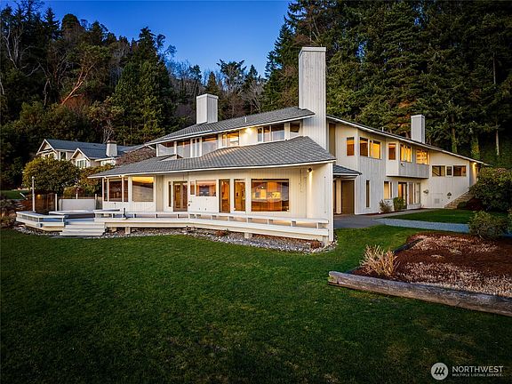 Welcome to this extraordinary 147 ft of low-bank waterfront home in the heart of Normandy Park, available for the first time! Nestled down a gated private drive this coveted lot & stunning property offers breathtaking panoramic views. Architect A.O. Bumgardner designed this home with custom craftsmanship, expansive windows, vaulted ceilings, cedar paneling, open living spaces, & seamless indoor-outdoor flow. The spacious living room boasts vaulted cedar ceilings & cozy fireplace, perfect for enjoying sunsets over the Sound. A well-appointed kitchen provides ample space for cooking & entertaining, while the primary suite offers a private retreat with stunning water views. Once-in-a-lifetime opportunity to own a legacy waterfront property.