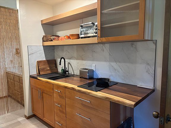 One bedroom, livingroom, kitchenette and bathroom with a private back deck and balcony.