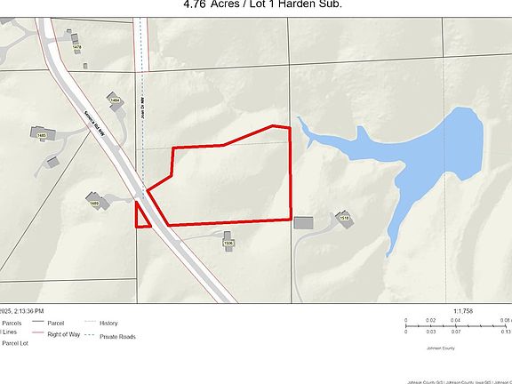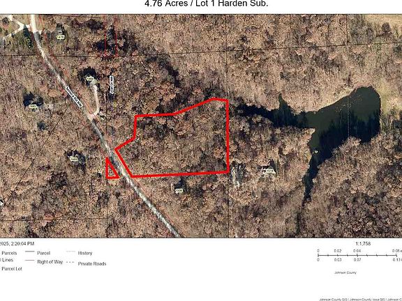 Rare find! This is one of 2 very nice heavily wooded walkout lots nestled into mature native Iowa timber in a secluded area off a dead-end road. The building sites have already been cleared, and a partial trail cut into the timber. Located approximately 14 miles to Cedar Rapids or Coralville, and just minutes to the Coralville Lake & Recreation areas. Electric will be ran to each lot’s property line, and the future private well & septic to be installed by Buyer. There will be minimal covenants. Lot 1 is 4.76 Acres and Lot 2 is 4.91 Acres