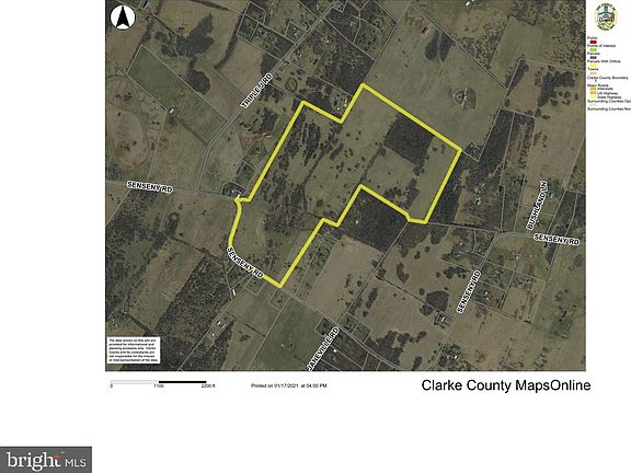 163 +/- private acres in central Clarke County convenient to RT 7. Land spreads north of Senseny Road between Janeville Road and Triple J Road. Flat with gentle roll; 70% open, 30% wooded. Pastures and meadows. Abundant wildlife. Small shed with electricity near well. Four board fence along Senseny Road; American wire around remaining perimeter; cross fencing. Recent use has been cattle farming. 2 DUR's. 70 miles west of downtown DC. 45 minutes to Dulles Airport. 8 miles to Winchester, Virgina. Just west of the Blue Ridge Mountains and the Shenandoah River in "slow growth" Clarke County. Property is in agricultural "land use"; Seller not responsible for roll back taxes.