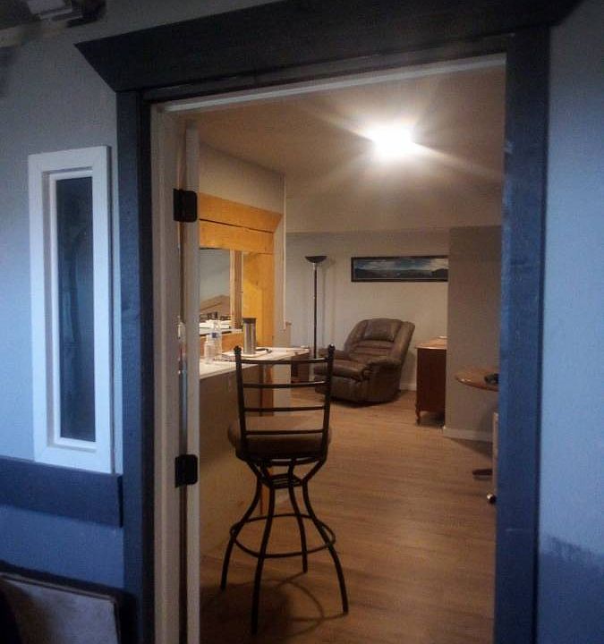 Nicely furnished studio. Very private and secure in upscale neighborhood. Has limited view of Straits of Juan de Fuca. It features a very comfortable queen size bed a large recliner, and a small dining set AND addition eating bar. It also has a small office area/walk-in closet. No pets. No smoking . No drugs. No DRAMA.