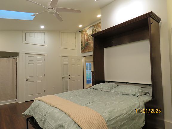 Newly constructed cottage, fully furnished, with one bedroom, one bath and a large open ceiling living room and dining area. Wood stove with large screen TV, washer/dryer unit. Heated and air conditioned via an efficient heat pump. Large covered patio area with lights facing open acreage and the Olympic mountains. Unique layout. Located in Sequim in a peaceful and quite location.