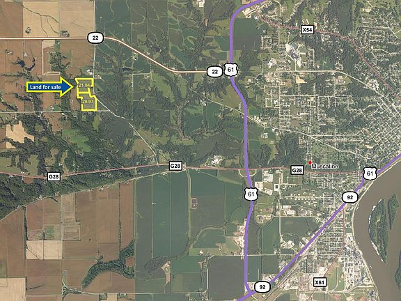 This property is located 3 miles west of Muscatine, IA just south of Hwy 22 in a highly sought after area. Potential for a great building site with farm exemption permit. A nearly all tillable tract currently enrolled in CRP until 9-30-2030 paying approximately $5,710 per year. Average CSR2 of 79.2. Final CRP acres and payment to be determined by FSA split. Adjoining 28.97 acres also available. All mapping is approximate.