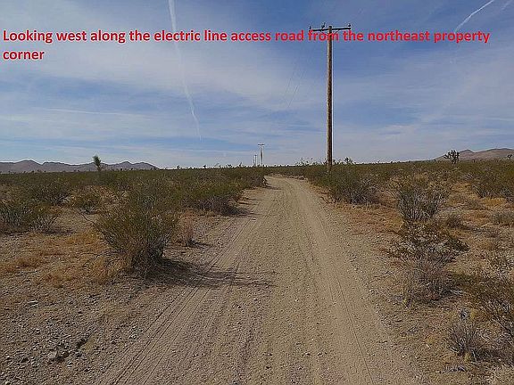 This 20.0 acre parcel is in the scenic Southern California high desert community of Adelanto. The property is an hour drive from the Riverside-San Bernardino area. You take I-15 north through the Cajon Pass then Highway 395 to Shadow Mountain Road. You travel west on Shadow Mountain Road for 3.57 miles to Mountain Road. You head south on Mountain Road for 0.38 miles until you come to an electric line road. You take the electric line road east 0.30 miles to the northwest property corner.