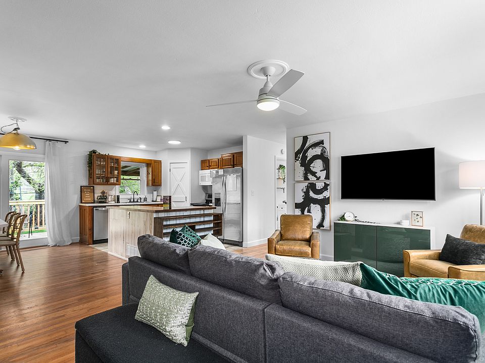 Inside, you will find sun-filled living spaces, a fresh & fully-equipped kitchen, dining room, high-speed WiFi, Smart TV so you can login to your account and stream your favorite show, read a book in our sunroom or in our backyard for warm weather hangs.