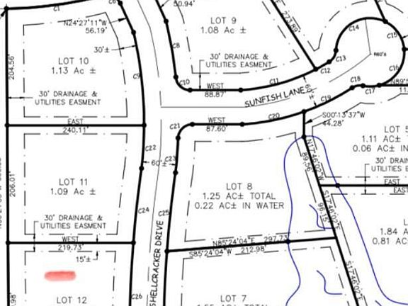 Lot 12: 1.04 Ac. +- with 221.35 ft. on Shellcracker Drive (access point).