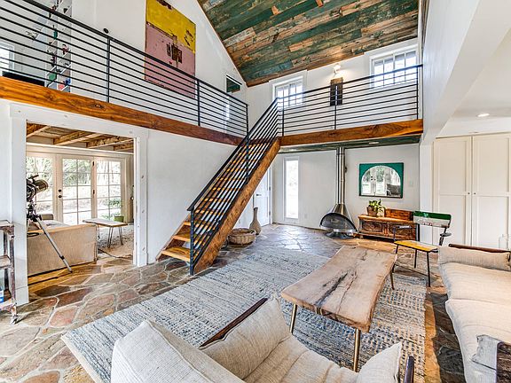 Rental Registration #: 2025-L0006 This chic barn-style house is located off a quiet lane and is ready for your next memorable summer vacation. Step inside the front door to double height ceilings, exposed rafters and stone floors with doors leading out to a private garden with pool. The kitchen is comprised of high end appliances and an efficient layout, with a dining area adjacent, with windows looking out to the garden. Alongside the living area is a library-media room and upstairs is a loft with lounge area and daybed, a guest bedroom and a primary bedroom with en suite bath. The grounds offer a blissful flagstone garden with chaises around the pool. Located in Hilo Shores with day dock use on West Neck Bay. Within close proximity to beach resort areas and ferry, slightly off the beaten path for your rest and relaxation.