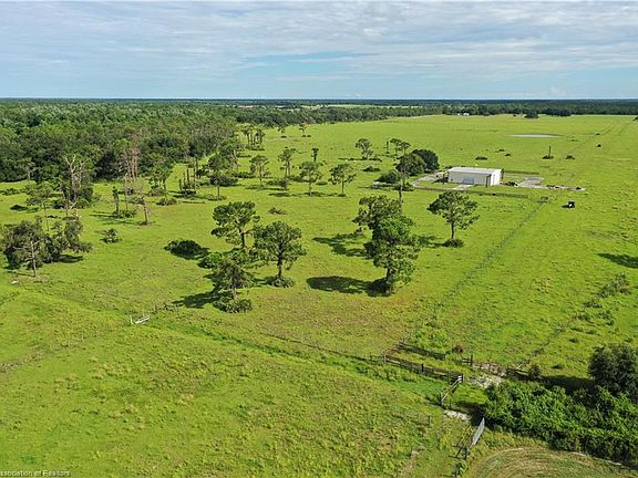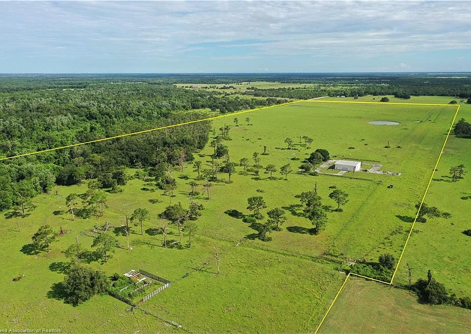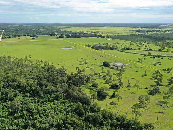 Fly-in 122+-Acre Ranch Retreat with 4000+-SF Hangar bahia pastures fenced & cross fenced, cattle pens. Surrounded with ideal wildlife sources:lush high protein hay fields to south, heavy woods to east & large tracts to west. 1000+ft paved road frontage. Perfect for home site in oak hammock behind air hangar then develop in future with five 20+acre fly-in ranchettes keeping your premium home site in back or sell for more potential profit.