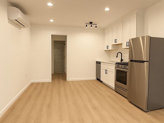 Photographs are rendered as project is under construction and is due to be completed for December 15; renovation will include all new kitchen, appliances, newly constructed bathroom, luxury vinyl laminate floors, recessed LED lighting and new lighting fixtures. Apartment has two sliding glass doors leading out to the ground level and shared patio space. Moving requires first month rent, security, and Broker fee.