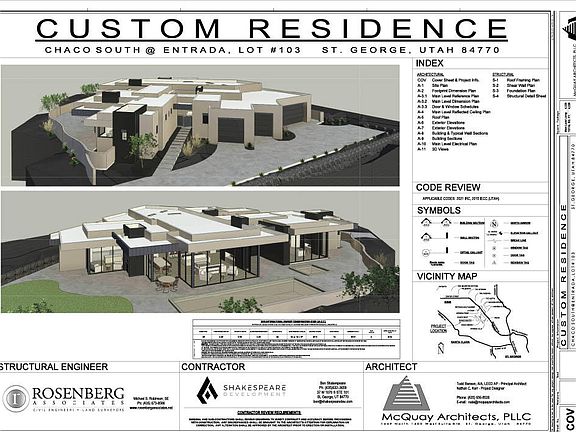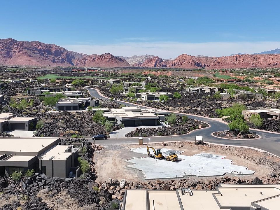 VIEWS of Snow Canyon, Red Mountain, Pine Valley, & the towering red cliffs around Entrada! Custom-built home in the Exclusive Chaco South at Entrada. Home built by Shakespeare Development Group and designed by McQuay Architects. 1 level, no stairs, corner lot, spacious kitchen & great room, Butler's pantry, elegant master suite, vaulted ceilings, 4-car garage, private oasis backyard w/ pool & spa, & backyard/patio shaded in hot summers! Under construction. Estimated completion Spring 2026. See floor plan in photos. Some photos are renderings of a similar home/yard by same builder.