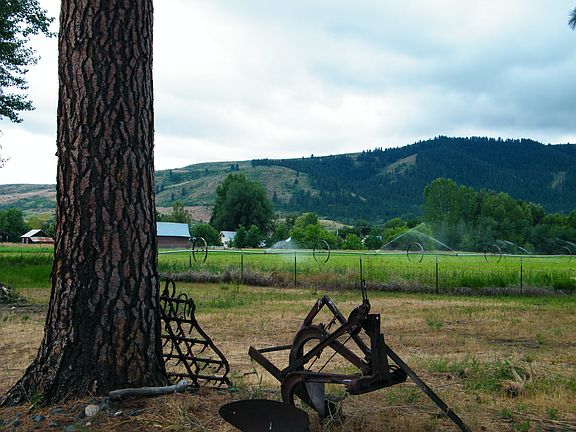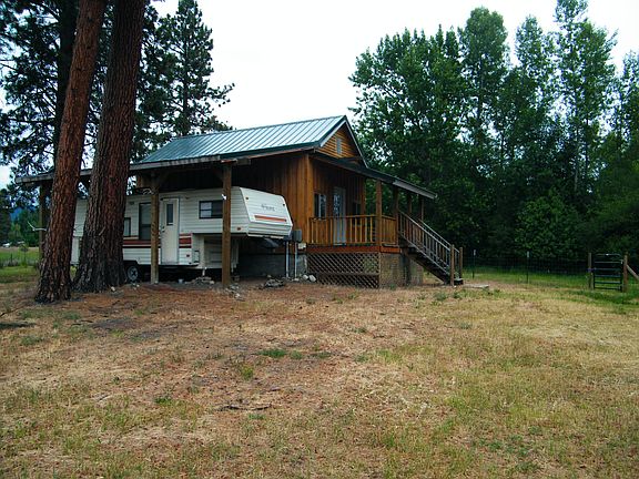 A place to build or use as a getaway. Unfinished cabin on 4.4 m/l acres. Within city limits so you have water and sewer services yet feels very county. Includes 800 sq. ft. machine shed and a Camper comes with it too! Beautiful setting with trees, views of mountains and valley floor and the sound of water with Pine Creek running though the property. You will not find another property like this.