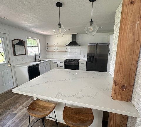 Spacious backyardStylish countersNew kitchenBeautiful cabinetryBlack stainless steel appliancesUpdated home