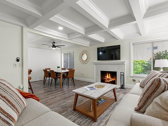 COME ENJOY the luxury of The Villas at Lomas Santa Fe! Located just minutes from the beach, and newly renovated just for you, including CENTRAL AIR (mini-split system) for your comfort and a wood burning fireplace for ambience! The unit has been outfitted well, complete with a fully stocked kitchen, richly appointed w/ gorgeous coffered ceilings, crown molding, wainscoting, and new LED canned lighting! Your kitchen comes complete w/new quartz counters & room for 3 at the bar, a pot filler, lots of cabinets and storage, and all kitchen pots and utensils to make your stay enjoyable! Your primary bedroom also includes a free-standing fireplace, sitting area and slider out to your private, covered patio w/luxury wicker chairs, a BBQ, twinkle lights and a cozy fire pit! Enjoy the pool, hot tub and racquetball courts, plus beautiful water features and greenbelt just outside your door! Excellent shopping just a block away and relax at Fletcher Cove, complete with lifeguards on duty year-round, public restrooms & showers, picnic tables and a basketball court! This is truly a dreamy place to get away. Feel free to bring your laptop and have a work station located in your secondary bedroom. LIVE, WORK, & PLAY IN BEAUTIFUL SAN DIEGO!