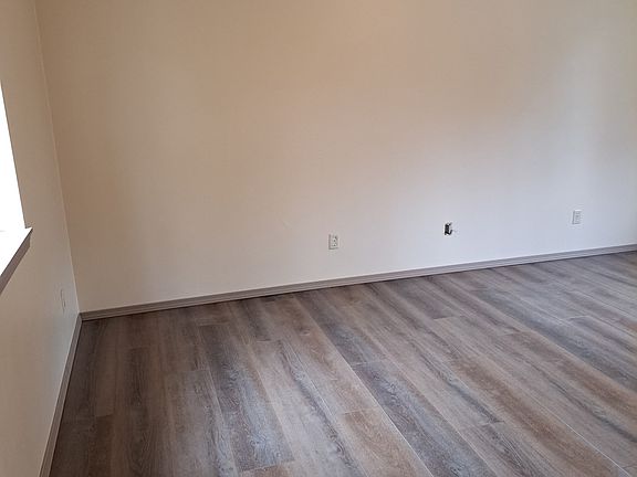 New paintWooded settingLaminate flooringMud roomKitchen with appliances