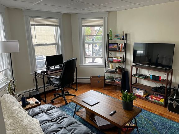 Sparkling 1 bedroom in Central Somerville with private back porch. Renovated eat-in kitchen with dishwasher, disposal and stainless steel appliances. Hardwood floors. Heat, hot water, cooking gas included in the rent. Coin-op laundry in the basement. One (unassigned) driveway space included in the rent. Cat okay and small dog under 35lbs. Note: price and availability subject to change without notice.