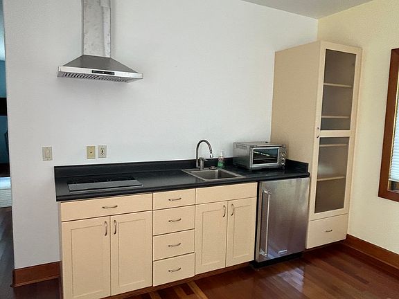 There is a built-in induction cooktop, hood and Breville toaster oven. The guest cottage would be suitable as a "pied-a-terre".
