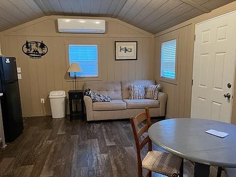 New build!! All new everything tucked into the woods. Quiet and comfy. approx 1/2 mile off the state road. 6 minutes from town. Fuuly Furnished with utilities included