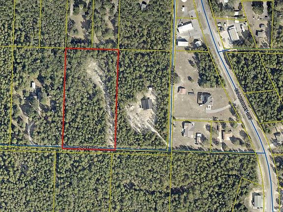 THIS IS IT -- THE 5 ACRE PARCEL YOU HAVE BEEN LOOKING FOR! Level and wooded rectangular lot has a wide grassy access drive that leads to a nice big clearing, perfect for your new home. This lot is located in close proximity to the Mossy Head Water District headquarters and features a power line and a water line along South Drive in front of the property. (Tap fee is due and power pole and septic tank are needed on property). You won't find a more perfect 5 acres in North Walton County!