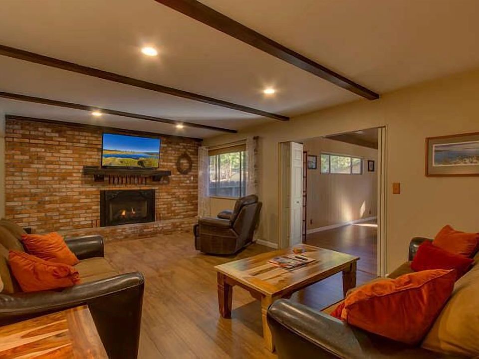 Fully furnished 3-bedroom, 2-bath home with garage parking for one vehicle available for ski lease (30 days up to 4 months). Walking distance to Safeway and Whole Foods markets. Close to Heavenly Ski Resort. Primary bedroom has a king bed and ensuite. Second and third bedrooms each have a queen bed. Both bathrooms have a tub/shower combination. Kitchen has a gas range, dishwasher, microwave, toaster oven, and is fully stocked with cookware and dining ware. Other amenities: washer/dryer, pool table, TV in living room and one bedroom. Central heat and on-demand water heater.